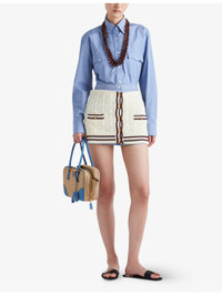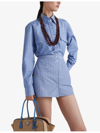PRODUCT DETAILS - Prada cotton mini skirt - 100% cotton - Button fastening - Regular fit, high rise, all-over striped print - Dry clean - True to size - Midweight, non-stretch Ref: R04331957