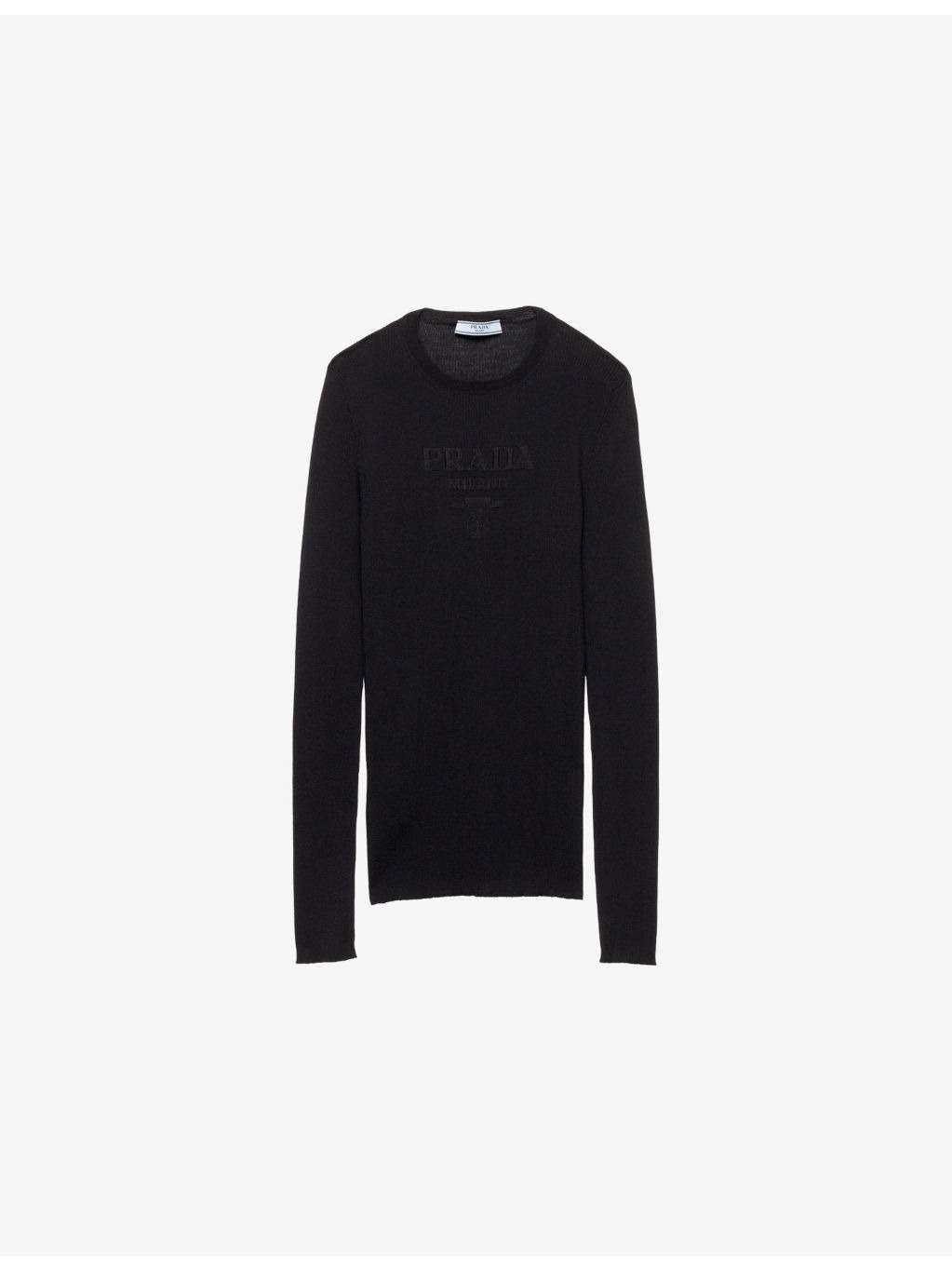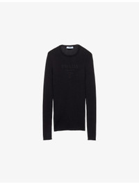 PRODUCT DETAILS - Prada wool knitted jumper - 100% wool - Slips on - Slim fit, crewneck, long sleeves, brand intarsia at front, ribbed texture, fine knit texture - Hand wash cold - Model is 5ft 10in/1.78m and wears a size UK 8 - Lightweight, slight stretch Ref: R04320499