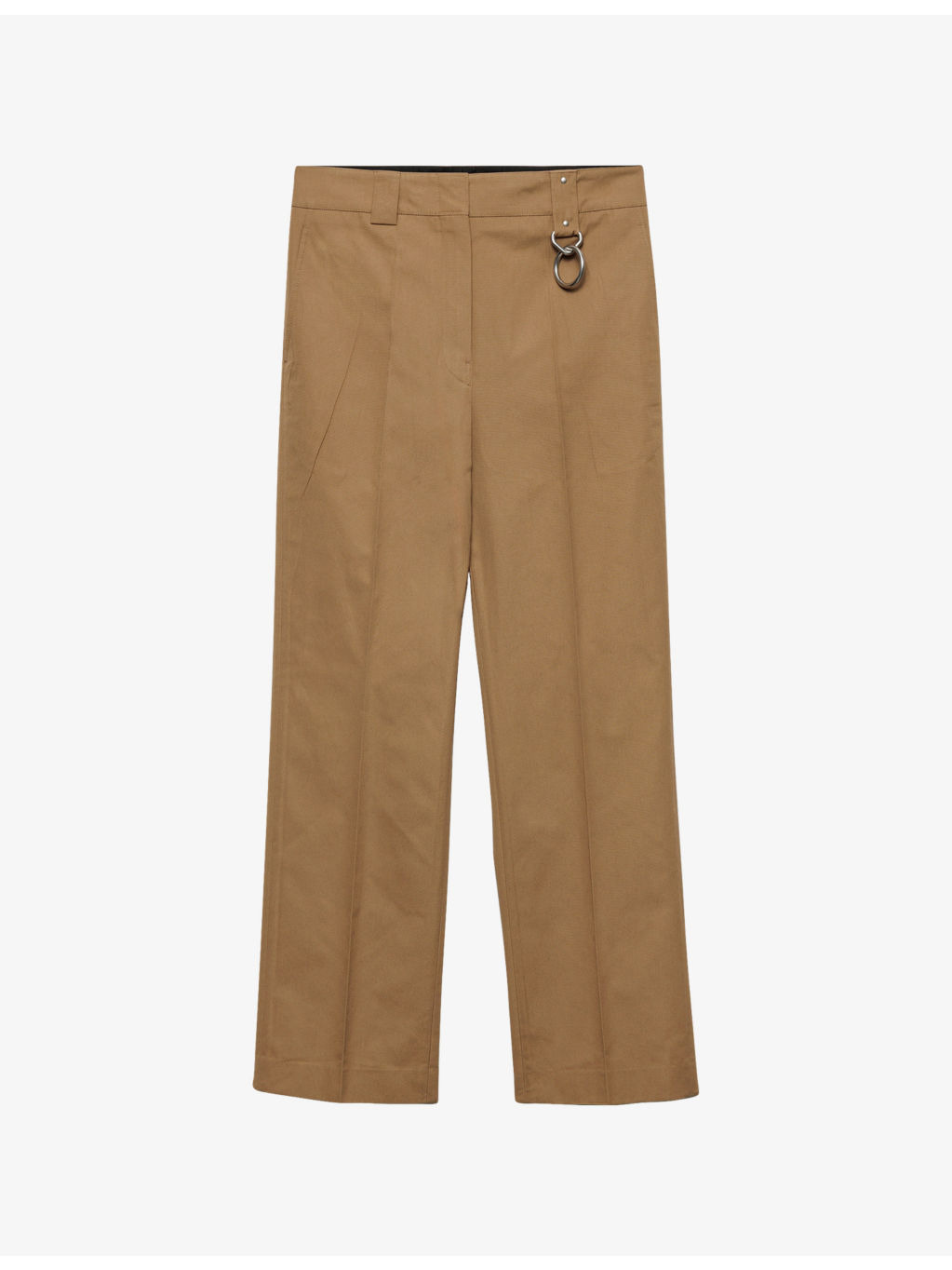 PRODUCT DETAILS - Prada cotton trousers - 100% cotton - Concealed hook-and-eye and zip fastening at front - Menswear fit, straight leg, belt loops, two slipped pockets at front, one welt pocket with button at back, metal ring detail at beltloop, pressed traveller's crease - Made in Italy - True to size - Model is 5ft 10in/1.78m and wears a size UK 8 - Lightweight, non-stretch - Please note, we are unable to accept in-store returns on Prada orders Ref: R04467439