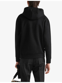PRODUCT DETAILS - Prada cotton-jersey hoody - 100% cotton - Pulls on - Relaxed fit, drawstring hood, long sleeves, brand text print at chest, ribbed trims - Machine wash cold - Model is 6ft 2in/1.88m and wears a size medium - Midweight, slight stretch Ref: R04401671