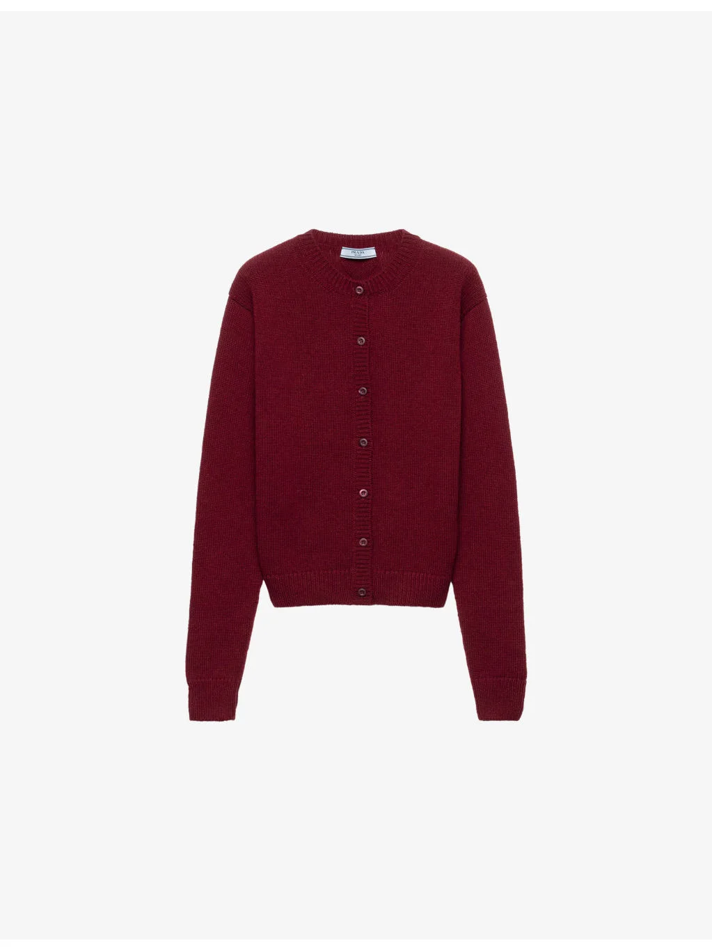 PRODUCT DETAILS - Prada cashmere knitted cardigan - 100% cashmere - Button fastening - Regular fit, round neck, long sleeves, triangle logo, ribbed trims - Dry clean - Made in Italy - Model is 5ft 11in/1.80m and wears a size small - Lightweight, stretchy Ref: R04520672