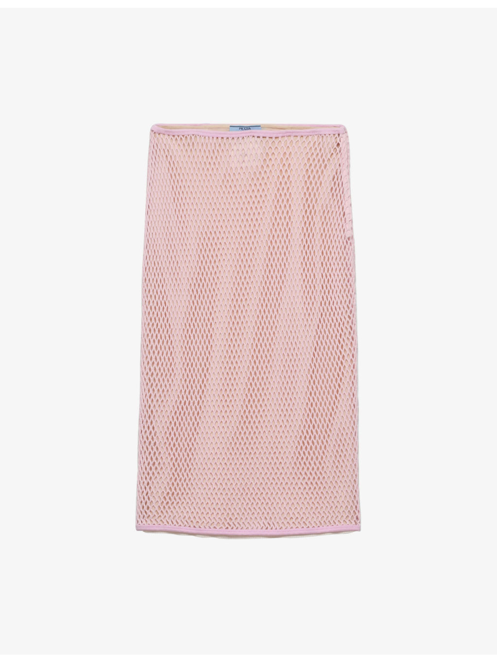 PRODUCT DETAILS - Prada cotton midi skirt - 100% cotton - Regular fit, mid-rise, elasticated waistband, mesh open knit, triangle enamelled logo - Machine wash cold - Made in Italy - Model is 5ft 10in/1.78m and wears a size UK 8 - Lightweight, stretchy Ref: R04455287