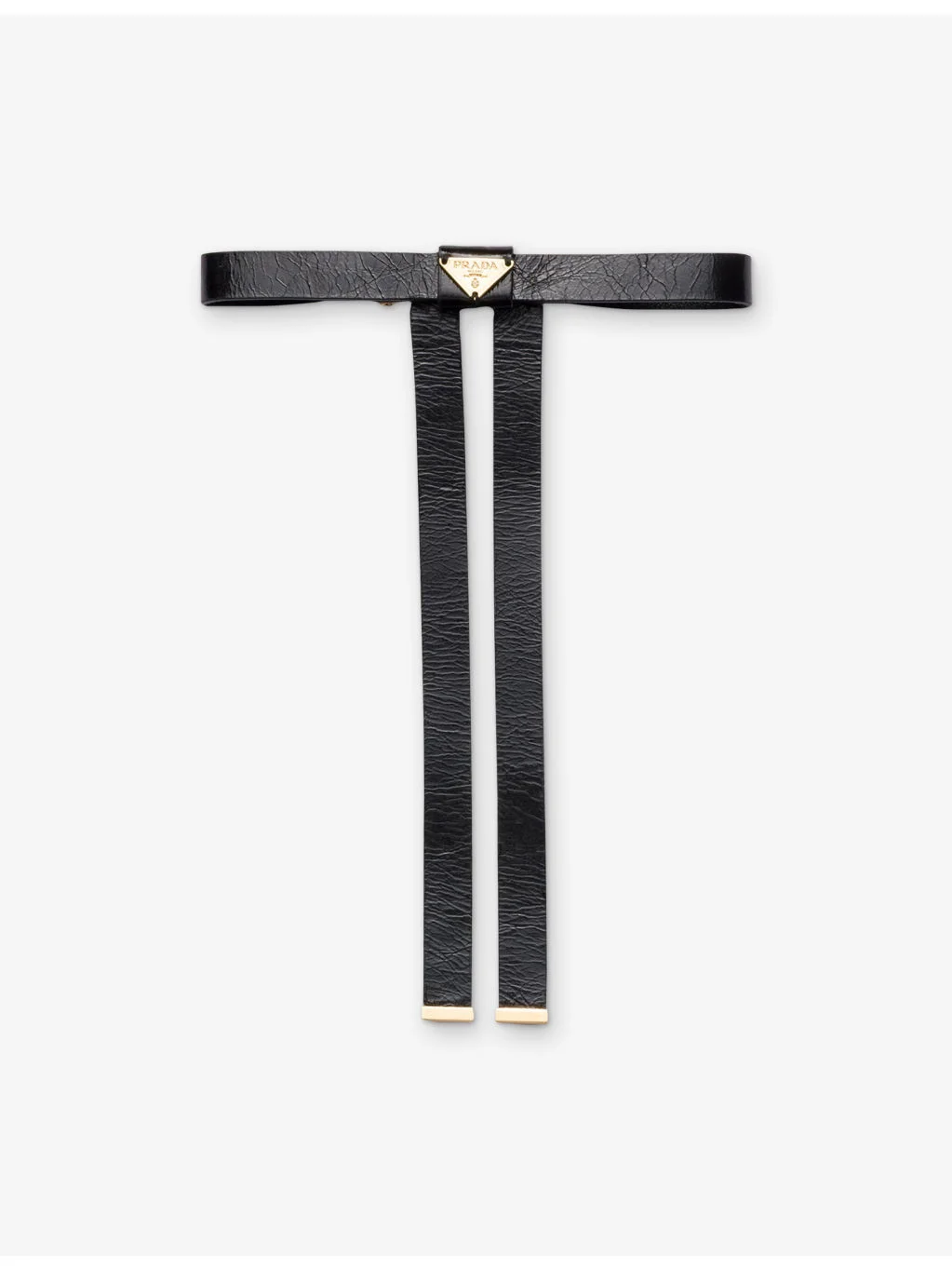 PRODUCT DETAILS - Prada leather hair clip - 100% leather - Clip-on - Bow shape, triangle logo plaque, draped ends - Length 12cm - Specialist leather clean Ref: R04572409