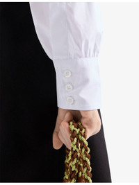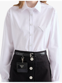 PRODUCT DETAILS - Prada cotton-poplin shirt - 100% cotton - Exposed button fastenings at front - Oversized fit, pointed collar, long sleeves, buttoned cuffs, triangle logo embroidered at chest, side slits, rounded hem - Machine wash at 30°C - Made in Italy - True to size - Lightweight, non-stretch Ref: R04466692