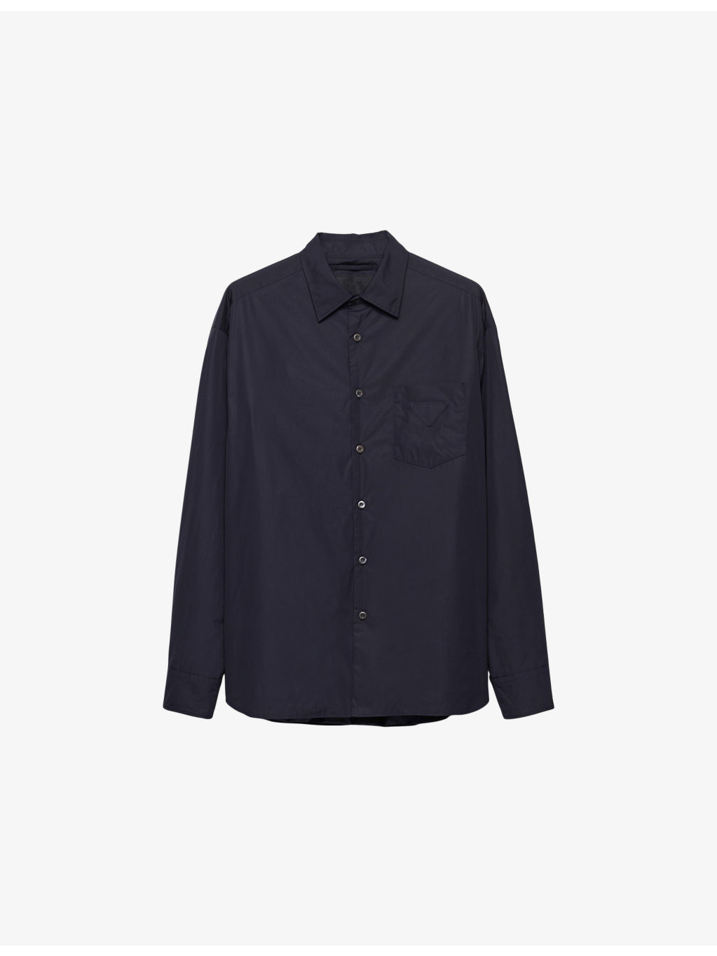 PRODUCT DETAILS - Prada cotton shirt - 100% cotton - Button fastening - Relaxed fit, classic collar, long sleeves, buttoned cuffs, patch pocket at chest with triangle applique, curved hem, lined and lightly padded - Dry clean only - Made in Italy - Model is 6ft 2in/1.88m and wears a size medium - Lightweight, non-stretch Ref: R04504187