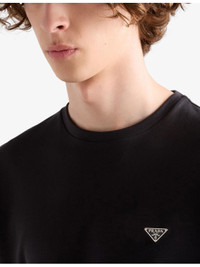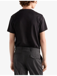 PRODUCT DETAILS - Prada cotton-jersey T-shirt - 100% cotton - Regular fit, crew neck, ribbed trim at neck, short sleeves, logo plaque at chest - Machine wash cold - Made in Italy - Model is 6ft 2in/1.88m and wears a size medium - Lightweight, slight stretch Ref: R04509413