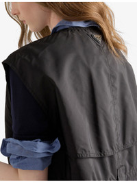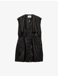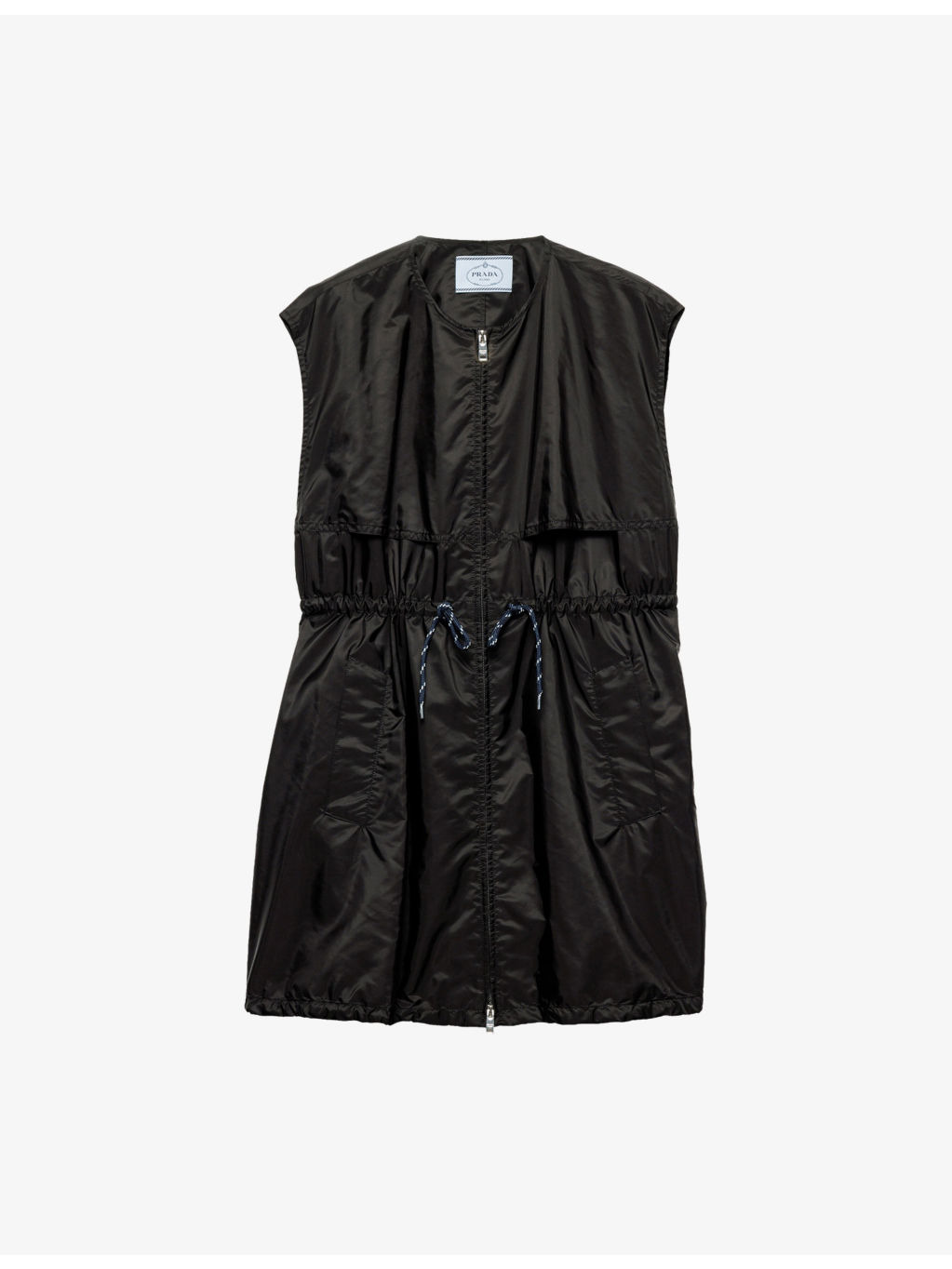 PRODUCT DETAILS - Prada nylon mini dress - 100% nylon - Zip fastening - Regular fit, collar, sleeveless, sleeveless, drawstring waist, triangle logo at back, overlay at back, polished hardware - Dry clean only - Made in Italy - Model is 5ft 10in/1.78m and wears a size UK 8 - Lightweight, non-stretch Ref: R04439450