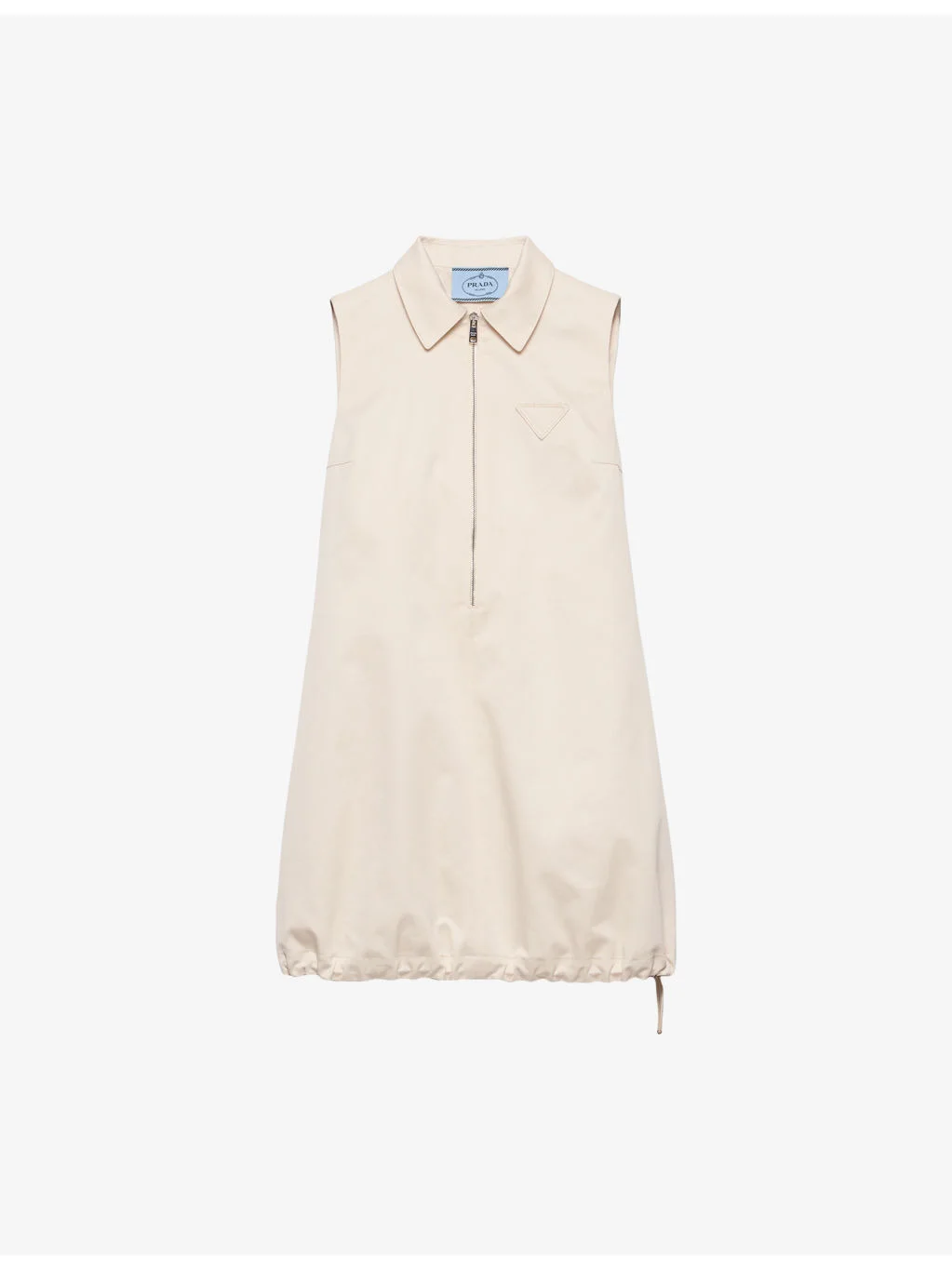 PRODUCT DETAILS - Prada cotton mini dress - 100% cotton - Exposed zip fastening at front - Regular fit, pointed collar, sleeveless, fabric triangle logo at chest, two side slip pockets, flared drawstring hem, mini length - Dry clean - True to size - Lightweight, non-stretch Ref: R04504181