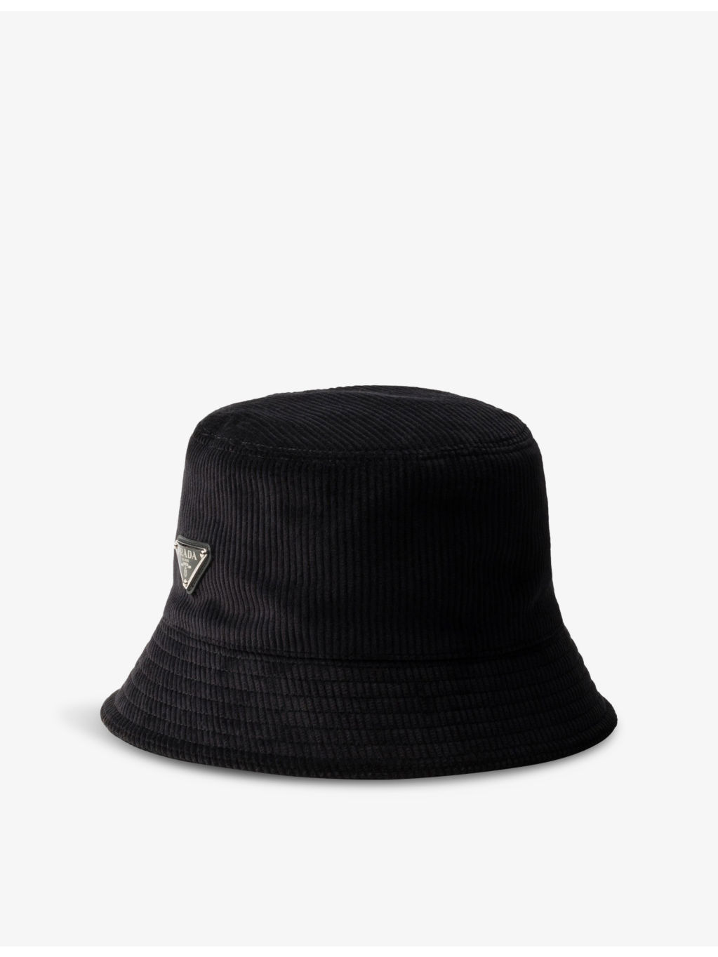 PRODUCT DETAILS - Prada cotton bucket hat - 100% cotton - Tapered brim, triangle enamelled logo at front, corduroy texture - Wipe with a clean, dry cloth - Made in Italy Ref: R04461408