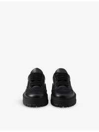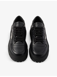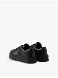 PRODUCT DETAILS - Prada leather low-top trainers - 100% leather - Lace-up fastening - Low top, round closed toe, perforated toebox, enamelled metal triangle logo plaque at side, logo-debossed tongue and heel counter, branded insole, lug tread sole - Specialist leather clean - Upper: 100% leather - Lining: 100% leather - Sole: 100% rubber Ref: R04392580