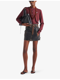 Vintage-finish buckle-trim leather mini skirt