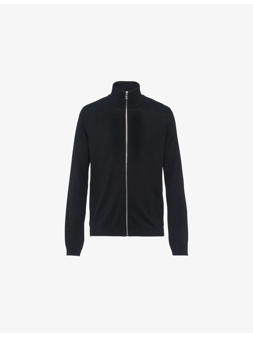 PRODUCT DETAILS - Prada wool cardigan - 100% wool - Exposed zip fastening at front - High turtle-neck, long sleeves, ribbed collar and cuffs, all-over waffle texture - Made in Italy - Model is 6ft 2in/1.88m and wears a size UK 48 - Lightweight, non-stretch - Please note, we are unable to accept in-store returns on Prada orders Ref: R04471405