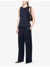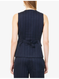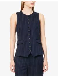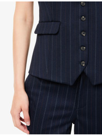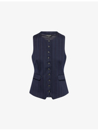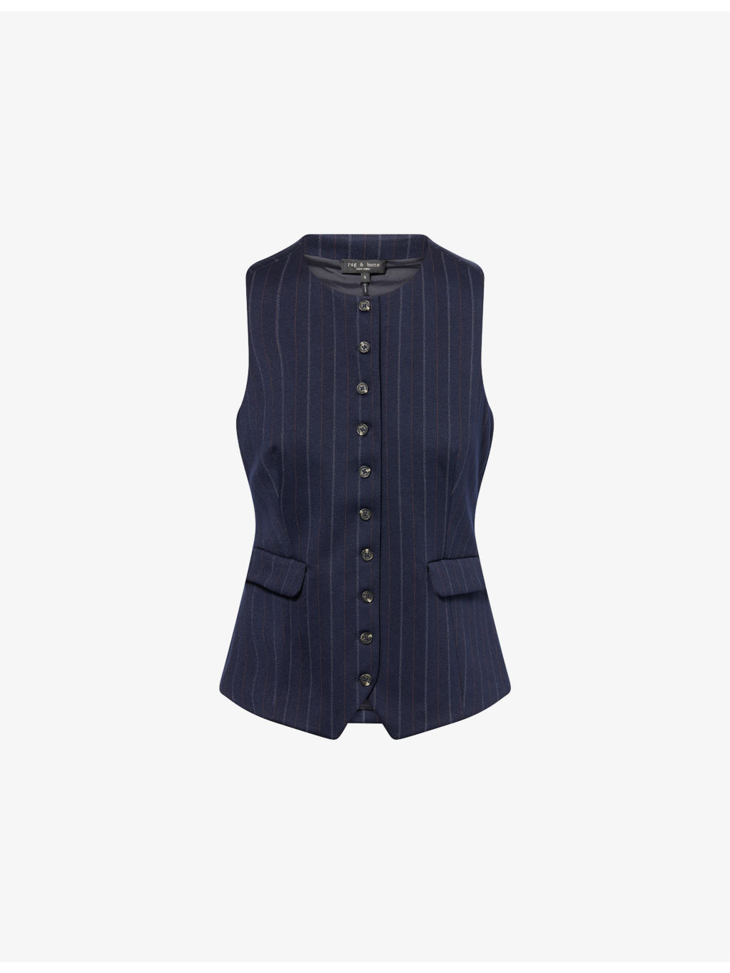 PRODUCT DETAILS - rag & bone stretch-woven vest - 37% viscose, 29% polyester, 29% polyamide, 5% elastane; lining 94% polyester, 6% elastane - Exposed button fastening at front - Regular fit, round-neck, sleeveless, two flap pockets at front, all-over striped print, fully lined, asymmetric hem - Machine wash at 30°C - True to size - Size UK 8: length 24in / 63cm - Model is 5ft 10in/1.78m and wears a size UK 6 - Lightweight, stretchy Ref: R04501567