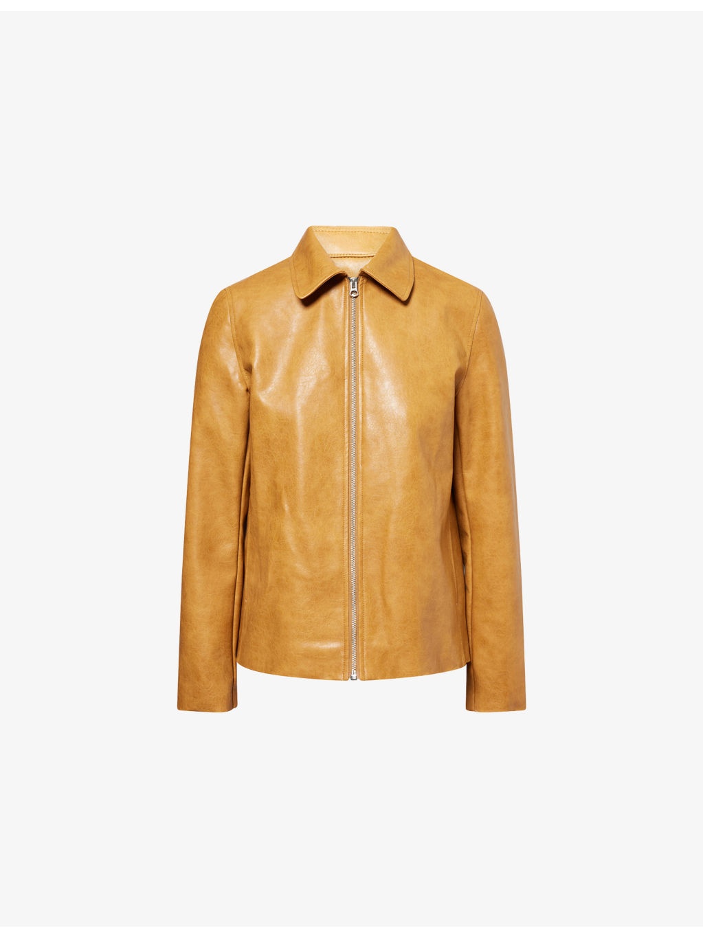 PRODUCT DETAILS - rag & bone faux-leather jacket - 100% polyurethane - Exposed zip fastening at front - Regular fit, pointed collar, long sleeves, two side slip pockets, silver-toned branded hardware, tonal stitching - Hand wash cold - True to size - Size small: length 27in / 69cm - Model is 5ft 10in/1.78m and wears a size small - Midweight, non-stretch Ref: R04467493