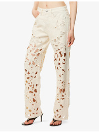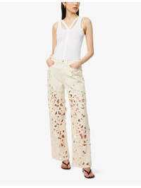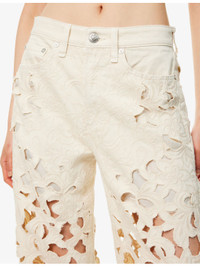 Logan Wide-Leg Jeans Lightweight Rigid in Ecru Floral Cutout