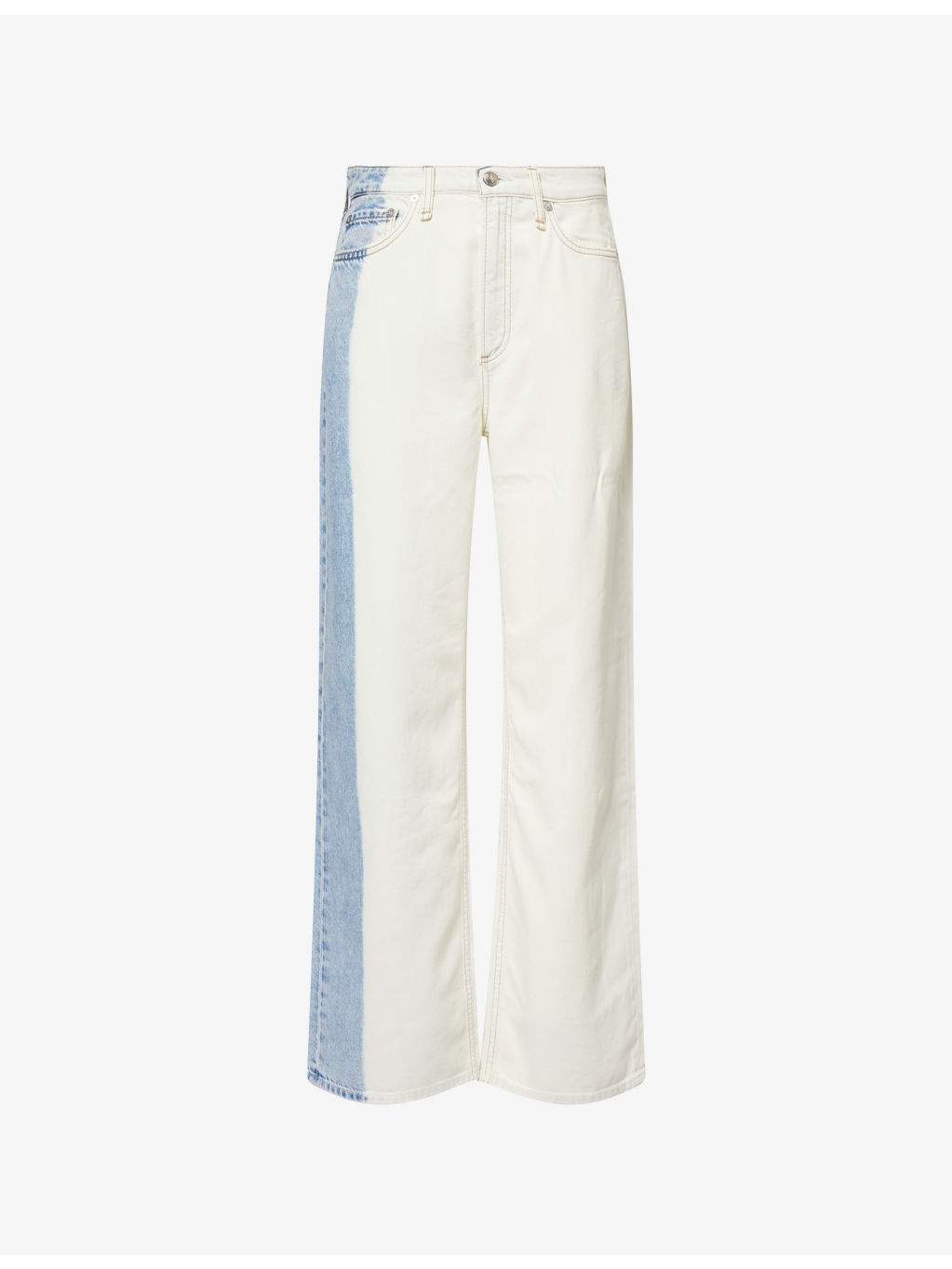 PRODUCT DETAILS - rag & bone denim-blend jeans - 64% cotton, 36% lyocell - Exposed button and concealed zip-fly fastening at front - Relaxed fit, mid-rise, wide leg, belt loops, five pockets, brand embroidery and brand patch at back, contrast print at sides - Machine wash at 30°C - True to size - Size 26: rise 12in / 32cm, inside leg 31in / 79cm, leg opening 20in / 51cm - Model is 5ft 10in/1.78m and wears a size 26 - Lightweight, stretchy Ref: R04467488