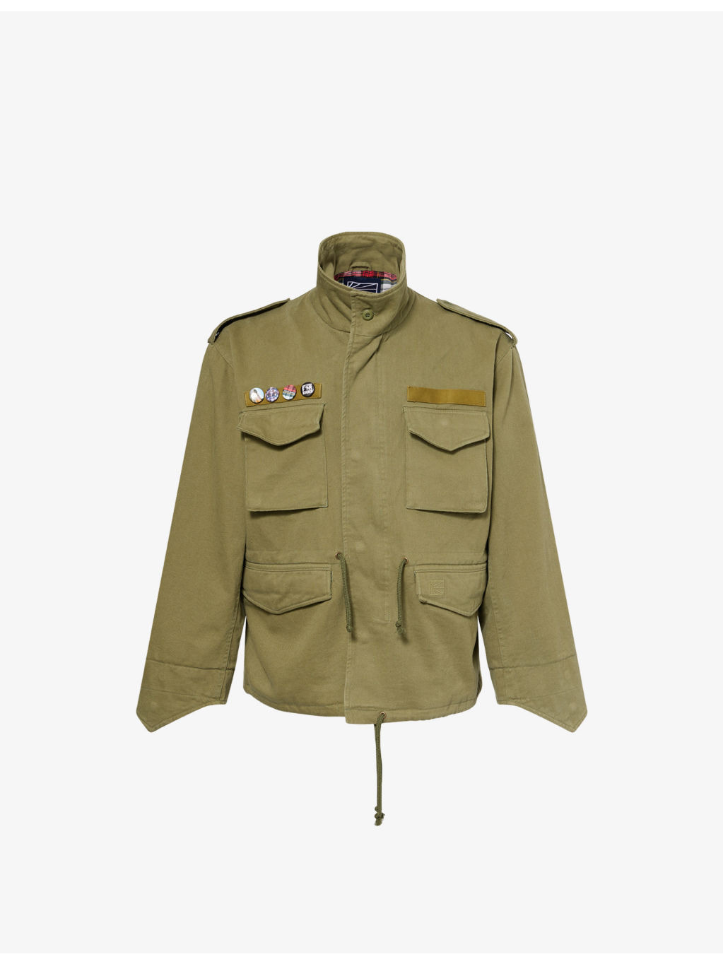 PRODUCT DETAILS - Rassvet cotton-canvas jacket - 100% cotton; lining 100% cotton - Exposed button fastenings at front - Regular fit, high neck, buttoned shoulder epaulettes, long sleeves, buttoned cuffs, four front flap pockets, removable pin badges on chest, brand embroidery at front, drawstring hem, check flannel lining - Dry clean - Made in Romania - Size medium: length 27in / 68.5cm, chest 44in / 112cm - Model is 6ft 2in/1.88m and wears a size medium - Midweight, non-stretch Ref: R04513393