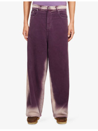 PRODUCT DETAILS - Rassvet denim jeans - 100% cotton - Exposed button and concealed zip-fly fastening at front - Baggy fit, high-rise, wide leg, structured waistband with belt loops, five pockets, logo embroidered at front, contrast stitching, brand patch embroidered at back, logo label at back, faded shadow wash - Machine wash at 30°C - Made in Romania - Size medium: rise 16in / 41cm, inside leg 28in / 71cm, leg opening 22in / 56cm - Model is 6ft 1in/1.85m and wears a size medium - Midweight, non-stretch Ref: R04513396