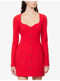 PRODUCT DETAILS - Rebecca Vallance stretch-woven mini dress - 98% polyester, 2% elastane; lining 97% polyester, 3% elastane - Concealed zip fastening at back - Slim fit, sweetheart neckline, long sleeves, buttons embellishment at front, darts at front and back, all-over crepe texture, fully lined - Dry clean only - True to size - Size UK 8: length 32in / 82cm - Model is 5ft 10in / 1.78m and wears a size UK 10 - Midweight, stretchy Ref: R04500244
