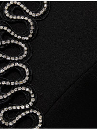 PRODUCT DETAILS - Rebecca Vallance crepe midi dress - 97% polyester, 3% elastane - Concealed zip fastening at back - Regular fit, V-neckline, short puff sleeves, diamente-embellished trim at front, cut-out at front, central rear slit, pencil midi skirt - Dry clean - True to size - Size UK 8: length 48in / 122cm - Model is 5ft 10in/1.78m and wears a size UK 8 - Midweight, non-stretch Ref: R04552316