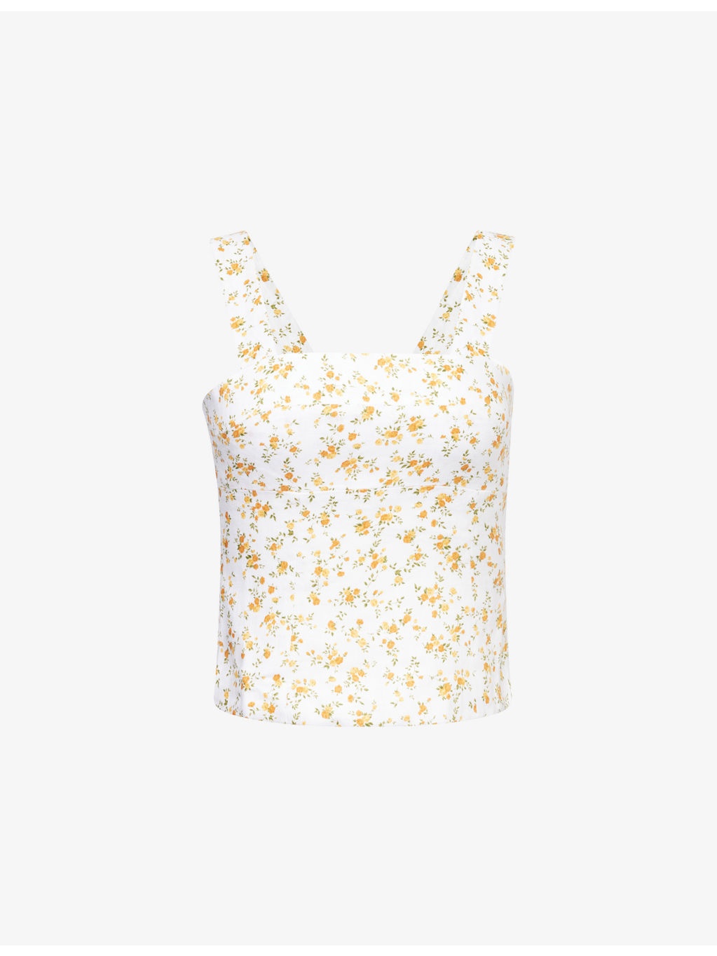 PRODUCT DETAILS - Reformation linen top - 100% linen - Slim fit, square neckline, sleeveless, smocked panel at back, floral pattern - Machine wash cold - True to size - Model is 5ft 10in/1.78m and wears a size UK 8 - Lightweight, non-stretch Ref: R04459964