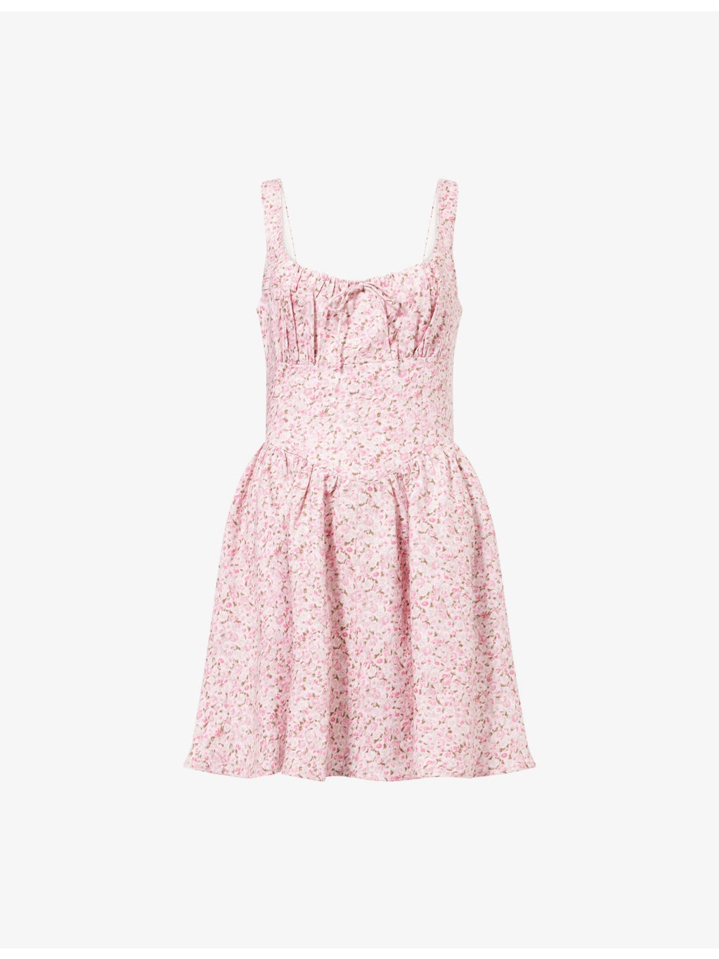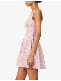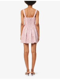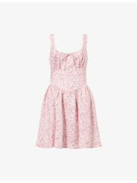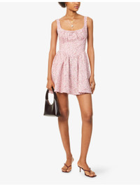 PRODUCT DETAILS - Reformation linen mini dress - 100% linen; lining 100% rayon - Concealed zip fastening at back - Regular fit, scoop neck, shoulder straps, bow embellishment and two slip pockets at front, shirred panel at back, all-over floral print, fully lined, flared hem - Machine wash at 30°C - True to size - Size UK 8: length 31in / 80cm - Model is 5ft 10in/1.78m and wears a size UK 8 - Lightweight, stretchy Ref: R04477869