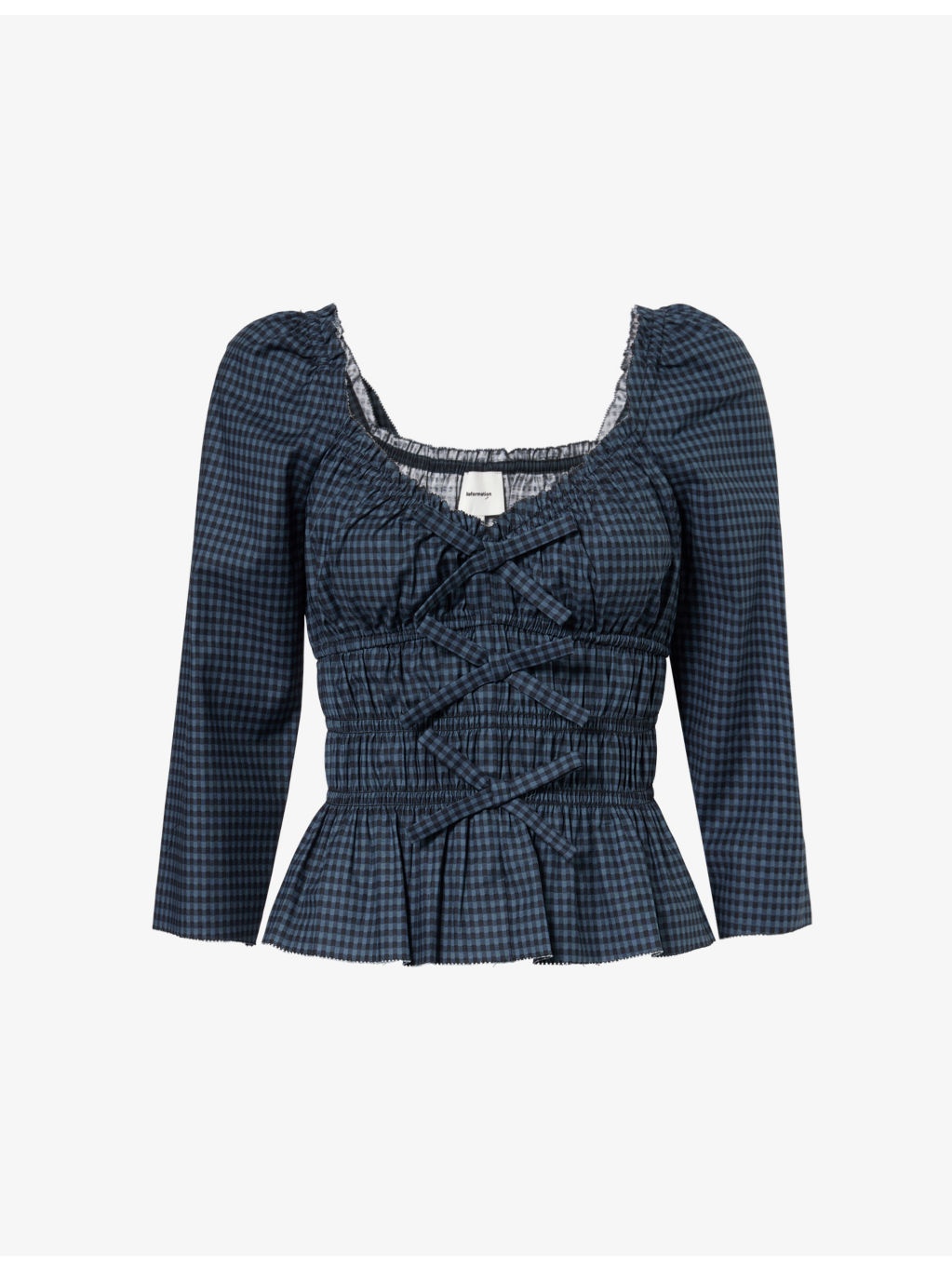 PRODUCT DETAILS - Reformation stretch-cotton top - 98% organic cotton, 2% elastane - Slips on - Slim fit, frilled V neck, long sleeves, bows embellishment at front, elasticated panels, all-over check print, ruffled hem - Machine wash at 30°C - True to size - Model is 5ft 10in/1.78m and wears a size UK 8 - Lightweight, stretchy Ref: R04433853