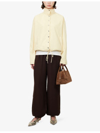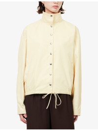 PRODUCT DETAILS - Reformation stretch-sateen jacket - 100% polyester; lining 100% acetate - Exposed popper fastenings at front - Relaxed fit, high-neck, long sleeves, press-stud cuffs, silver-toned hardware, two side press-stud slip pockets, elasticated drawstring hem - Dry clean - True to size - Size small: length 23.5in / 60cm - Model is 5ft 10in/1.78m and wears a size small - Lightweight, non-stretch Ref: R04598622