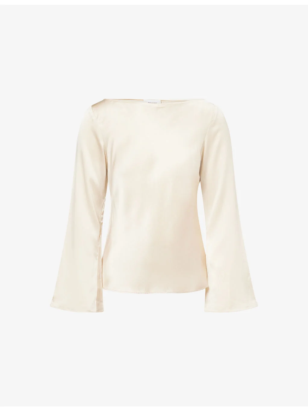 PRODUCT DETAILS - Reformation silk top - 100% silk - Regular fit, boat-neck, long bell sleeves, unlined - Dry clean - True to size - Model is 5ft 10in/1.78m and wears a size UK 8 - Lightweight, non-stretch Ref: R04546896