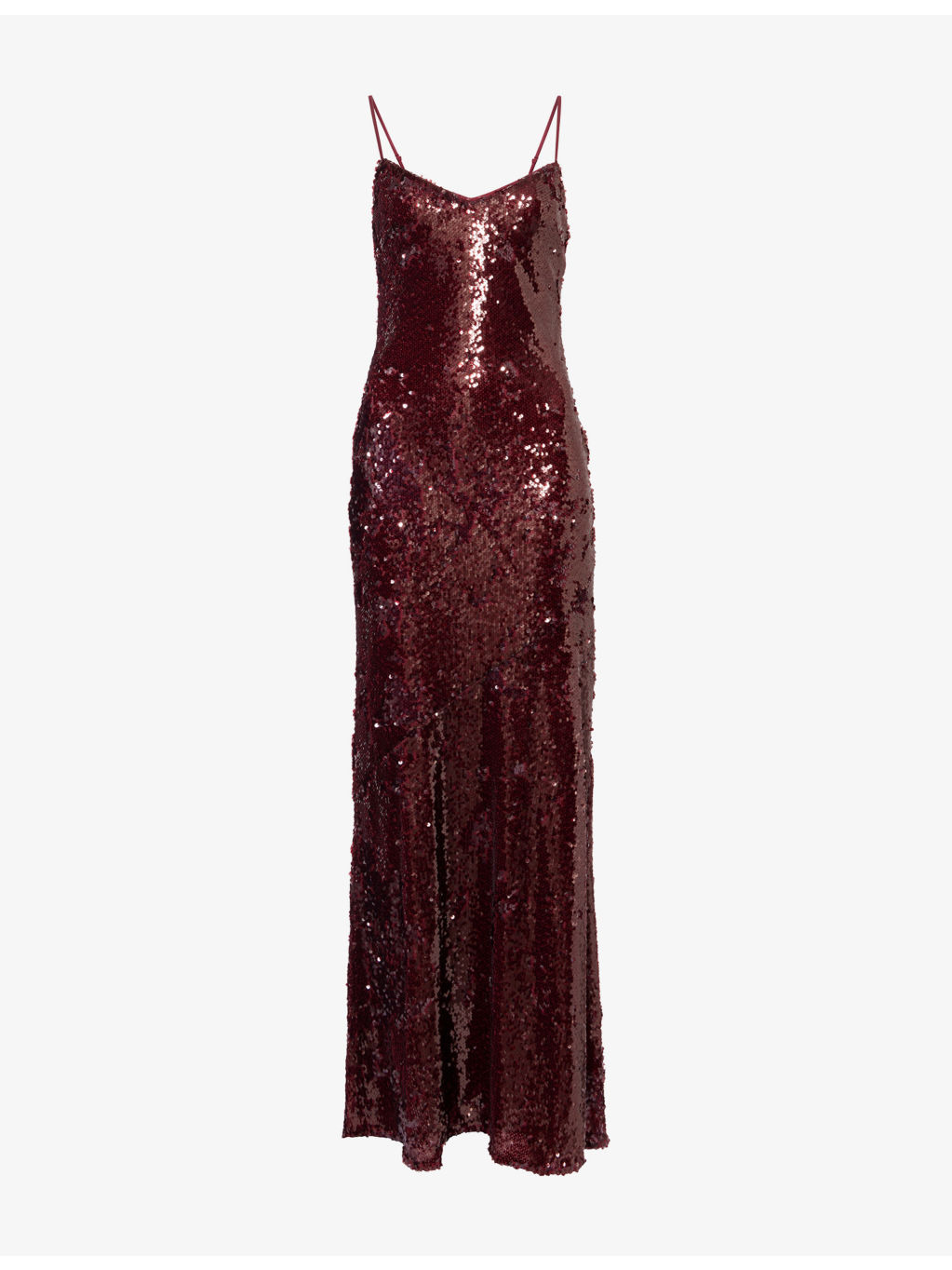 PRODUCT DETAILS - Reformation x Nara Smith woven midi dress - 100% polyester; lining 92% nylon, 8% elastane - Slim fit, V-neck, adjustable shoulder straps, all-over sequin embellishment, all-over mesh texture, fully lined, flared hem - Dry clean - True to size - Size UK 4: length 58in / 148cm - Model is 5ft 10in/1.78m and wears a size UK 4 - Midweight, stretchy Ref: R04531314