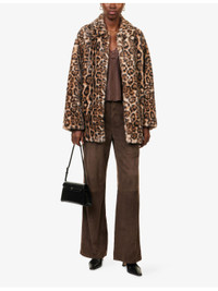 PRODUCT DETAILS - Reformation faux-fur coat - 100% polyester; lining 100% acetate - Concealed magnetic fastenings at front - Relaxed fit, collar, dropped shoulders, long sleeves, two side slip pockets, all-over leopard pattern, faux-fur texture, fully lined - Dry clean - True to size - Size small: length 31in / 79cm - Model is 5ft 10in/1.78m and wears a size small - Midweight, non-stretch Ref: R04546880