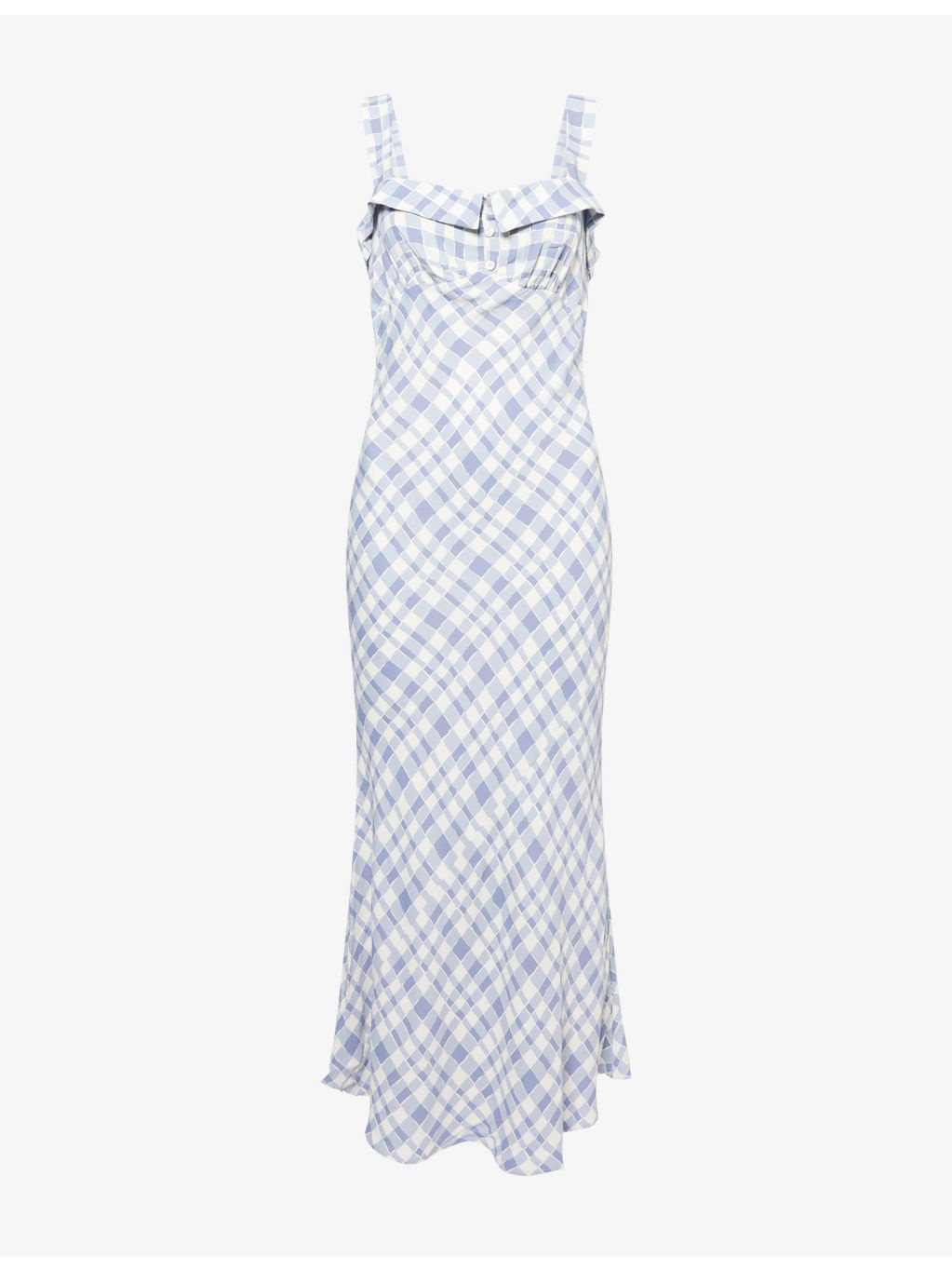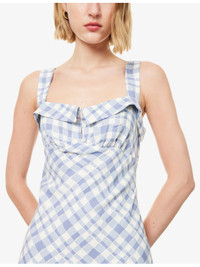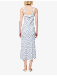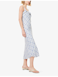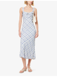 PRODUCT DETAILS - Reformation crepe midi dress - 100% viscose - Relaxed fit, straight-across neckline, sleeveless, adjustable shoulder straps, all-over checked pattern, folded trim to neckline and back, midi length - Dry clean only - True to size - Lightweight, non-stretch Ref: R04477897