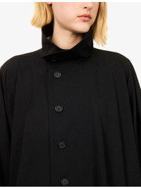 PRODUCT DETAILS - Regulation Yohji Yamamoto wool coat - 100% wool - Relaxed fit, high neck, long sleeves, slip pockets at front - Dry clean only - True to size - Size 2: length 39in / 99cm - Model is 5ft 10in/1.78m and wears a size 2 - Lightweight, non-stretch Ref: R04496830