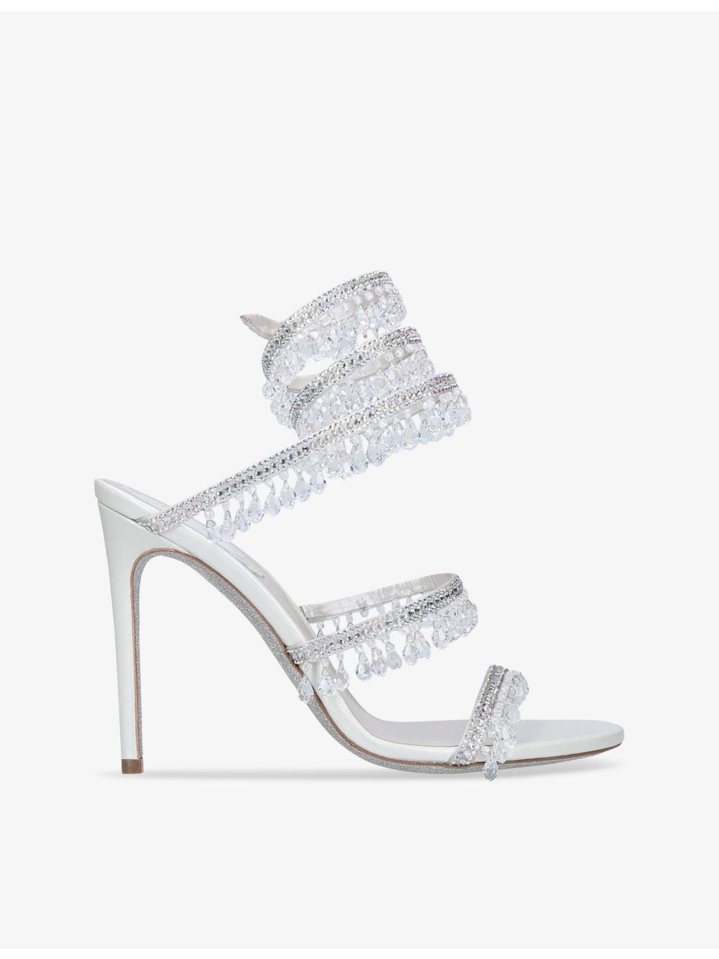 PRODUCT DETAILS - Rene Caovilla heeled leather sandals - 100% leather - Slips on - Almond toe, sandal style, spiral strap at ankle, chandelier-inspired crystal embellishment, high heel - Heel height 105mm - Specialist leather clean - Made in Italy - Upper: 100% leather - Lining: 100% leather - Sole: 100% leather Ref: R04393797