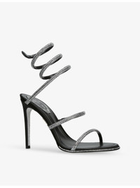 PRODUCT DETAILS - Rene Caovilla satin heeled sandals - 100% satin - Open round toe, rhinestone-embellished front straps and wraparound ankle strap, stiletto heel - Heel height 4.1” - Wipe with a clean, dry cloth - Made in Italy - Upper: 100% fabric - Lining: 100% leather - Sole: 100% leather Ref: R04468779