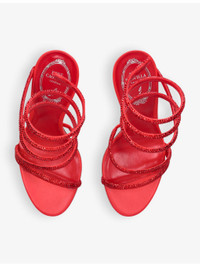 PRODUCT DETAILS - Rene Caovilla satin heeled sandals - 100% satin - Slips on - Spiral strap, crystal-embellished, high heel - Heel height 105mm - Wipe with a clean, dry cloth - Upper: 100% satin - Lining: 100% satin - Sole: 100% rubber Ref: R04409694