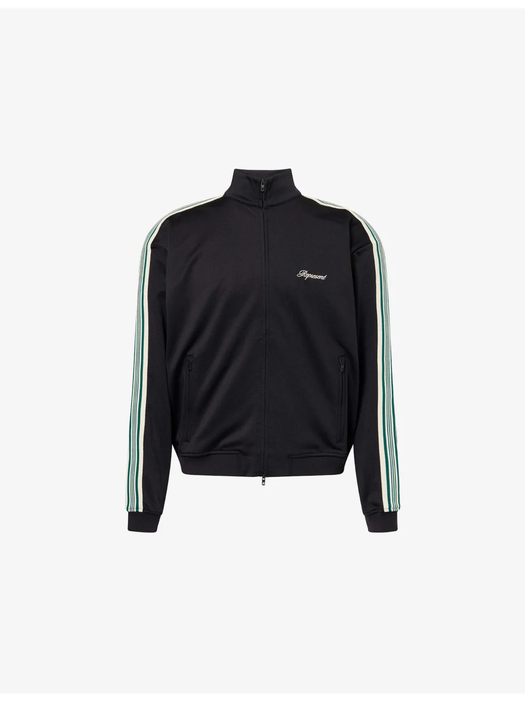 PRODUCT DETAILS - Represent woven track jacket - 97% polyester, 3% elastane - Concealed zip fastening - High neck, long sleeves, striped taped detailing down sleeves, embroidered logo at chest, two zipped pockets at front, ribbed trims - Machine wash at 30°C - Model is 6ft 2in/1.88m and wears a size medium - Midweight, slight stretch Ref: R04539627