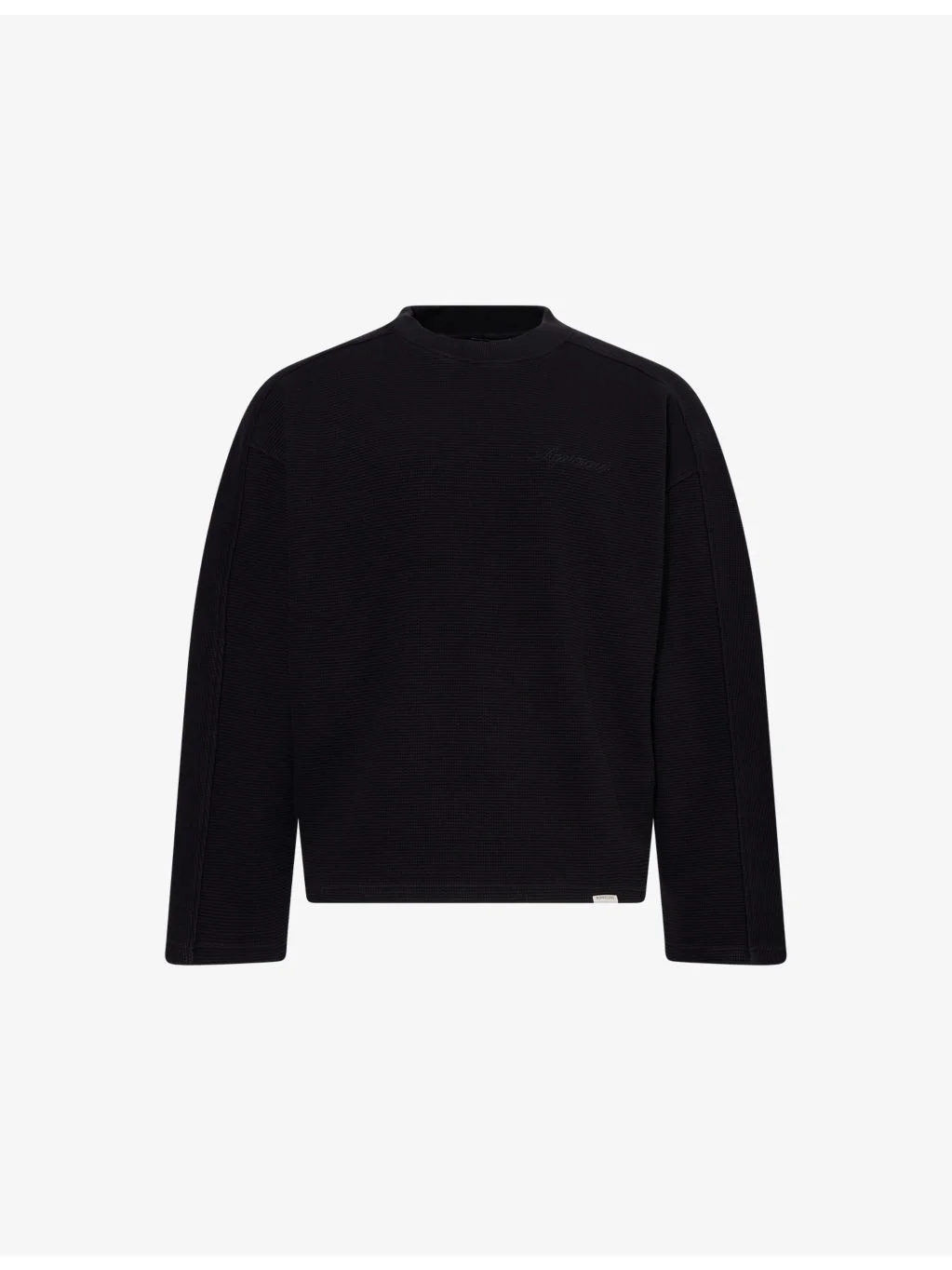 PRODUCT DETAILS - Represent cotton top - 100% cotton - Relaxed-fit, long-sleeves, ribbed trims, embroidered brand text, branded plaque at hem, all-over waffle texture - Machine wash at 30°C - Made in Portugal - Model is 6ft 2in/1.88m and wears a size medium - Midweight, non-stretch Ref: R04461011