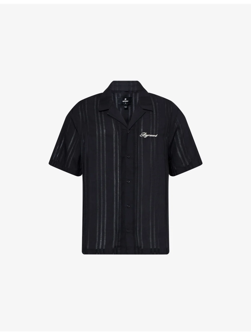 PRODUCT DETAILS - Represent cotton shirt - 100% cotton - Button fastening at front - Boxy-fit, classic collar, short-sleeves, semi-sheer, embroidered, brand logo at front - Machine wash at 30°C - Made in Portugal - Size medium: length 30in / 76cm, chest 23 in / 58cm - Model is 6ft 2in/1.88m and wears a size medium - Lightweight, non-stretch Ref: R04460996