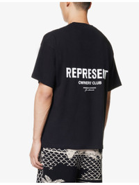 PRODUCT DETAILS - Represent cotton-jersey T-shirt - 100% cotton - Pulls on - Relaxed fit, crewneck, ribbed trim at neck, dropped shoulders, short sleeves, branded print at chest and back, silver-toned hardware, branded plaque at hem - Machine wash cold - Made in Portugal - Model is 6ft 2in/1.88m and wears a size medium - Lightweight, slight stretch