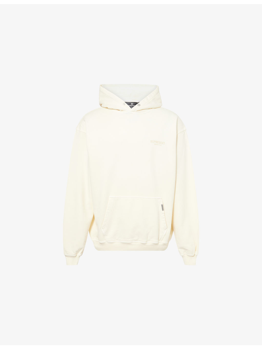 PRODUCT DETAILS - REPRESENT cotton hoody - 100% cotton - Pulls on - Relaxed fit, hooded, dropped shoulders, long sleeves, logo print at front and back, ribbed trims - Machine wash mild - Model is 6ft 2in/1.88m and wears a size medium - Midweight, stretchy Ref: R04525540