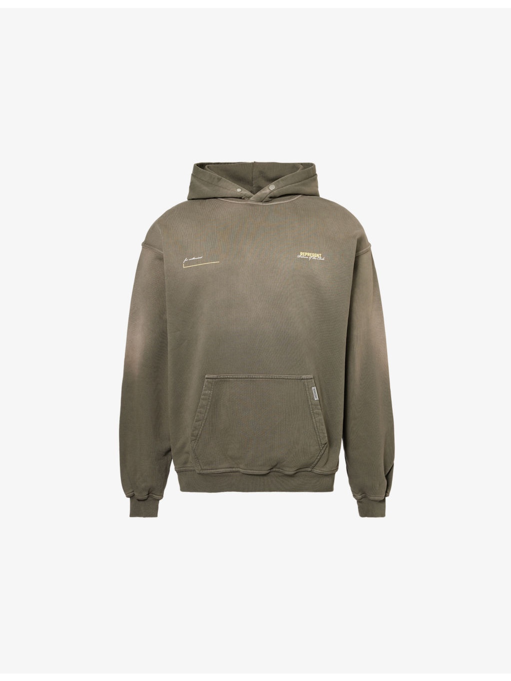 PRODUCT DETAILS - Represent cotton-jersey hoody - 100% cotton; trims 95% cotton, 5% elastane - Pulls on - Relaxed fit, buttoned hood, long sleeves, brand plaque and kangaroo pocket at front, brand and text print at front and back, ribbed trims - Machine wash at 30°C - Model is 6ft 2in/1.88m and wears a size medium - Midweight, stretchy Ref: R04400253