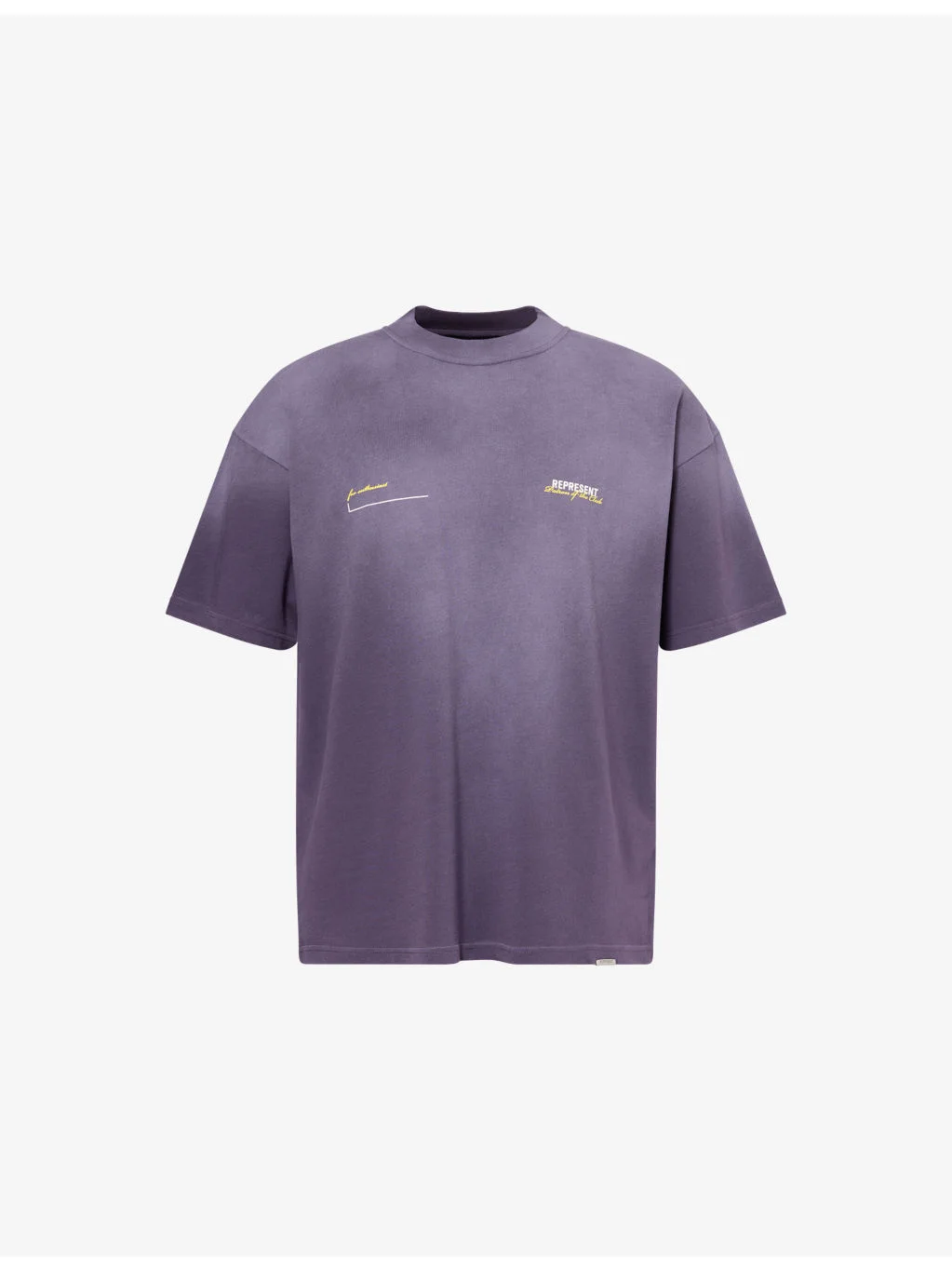 PRODUCT DETAILS - Represent cotton-jersey T-shirt - 100% cotton - Relaxed fit, ribbed crewneck, short sleeves, brand plaque at front, brand print at front and back, faded wash - Machine wash at 30°C - Made in Portugal - Model is 6ft 2in/1.88m and wears a size medium - Lightweight, stretchy Ref: R04523022