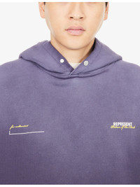 PRODUCT DETAILS - Represent cotton-jersey hoodie - 100% cotton; trims 96% cotton, 4% elastane - Relaxed fit, buttoned hood, long sleeves, kangaroo pocket at front, brand and text print at front and back, ribbed trims - Machine wash at 30°C - Made in Portugal - Model is 6ft 2in/1.88m and wears a size medium - Midweight, stretchy Ref: R04523020