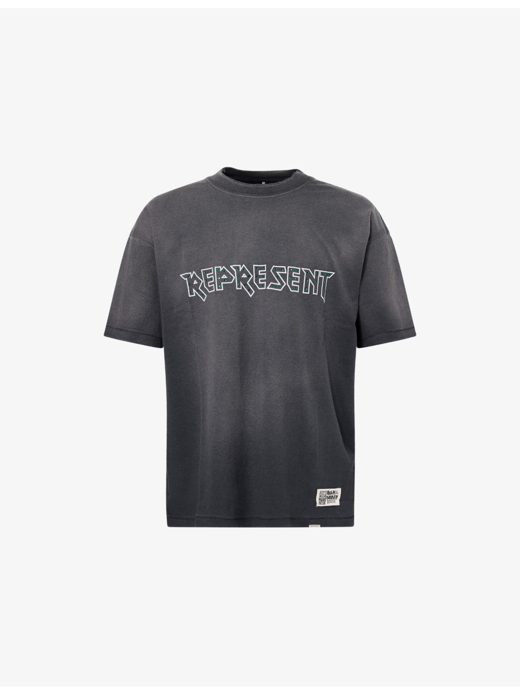PRODUCT DETAILS - Represent X Iron Maiden Anniversary Cotton T-Shirt - 85% cotton, 15% hemp - Pulls on - Represent X Iron Maiden Anniversary collection, crewneck, short sleeves, logo print at front, embellished gem stones - Machine wash mild - Model is 6ft 2in/1.88m and wears a size medium - Lightweight, slight stretch Ref: R04476444