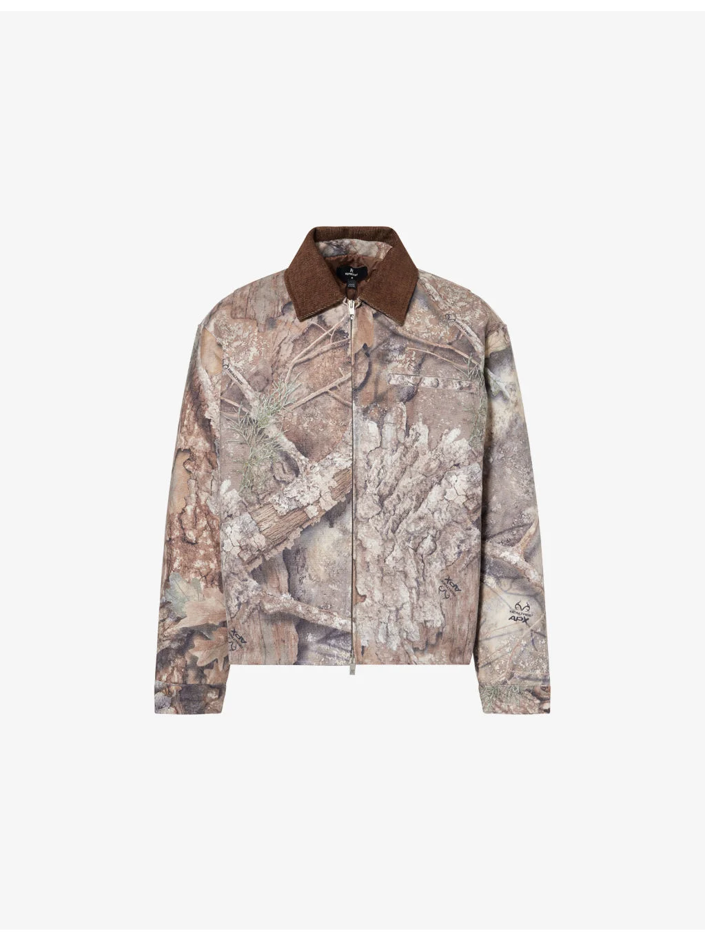 PRODUCT DETAILS - Represent cotton jacket - 100% cotton - Concealed zip fastening - Corduroy collar, long sleeves, buttoned cuffs, one welt pocket at chest, two slip pockets at sides, all-over tree graphic print, fully lined, straight hem - Machine wash at 30°C - Made in Portugal - Size medium: length 28.7in / 73cm, chest 47.2in / 120cm - Model is 6ft 2in/1.88m and wears a size medium - Midweight, non-stretch Ref: R04539633