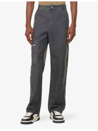 PRODUCT DETAILS - Represent cotton trousers - 100% cotton; lining 100% cotton - Exposed button and concealed zip-fly fastening at front - Relaxed fit, high-rise, wide leg, belt loops, two slip pockets and zip pocket at front, two patch pockets and brand plaque at back, all-over canvas texture - Machine wash at 30°C - Size medium: rise 14in / 36cm, inside leg 30in / 78cm, leg opening 18in / 46cm - Model is 6ft 2in/1.88m and wears a size medium - Lightweight, slight stretch Ref: R04523038