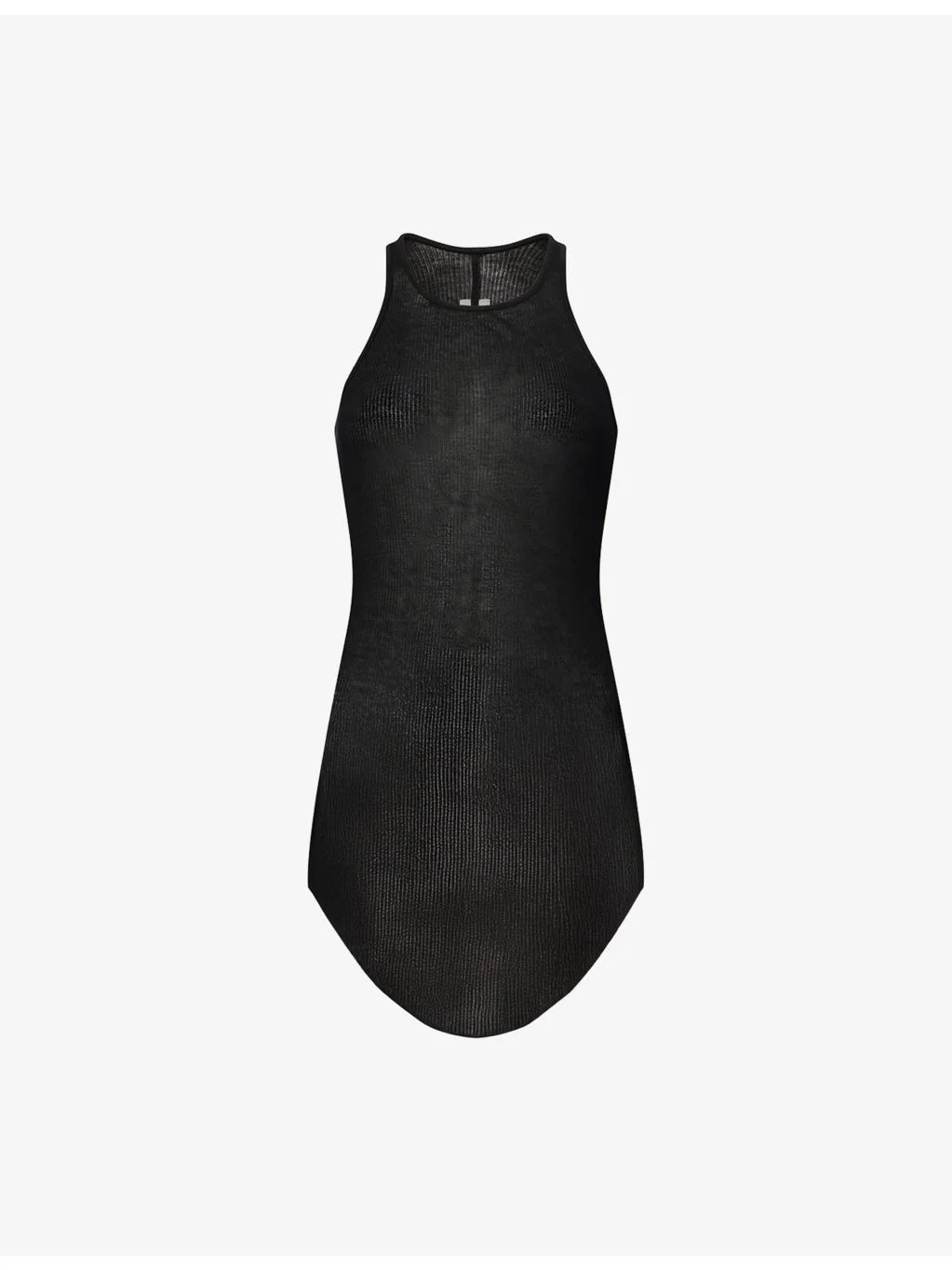 PRODUCT DETAILS - Rick Owens knit top - 88% viscose, 12% silk - Regular fit, scoop neck, sleeveless, semi-sheer, raw hem - Hand wash - Made in Italy - True to size - Model is 5ft 10in/1.78m and wears a size UK 8 - Lightweight, slight stretch Ref: R04583807