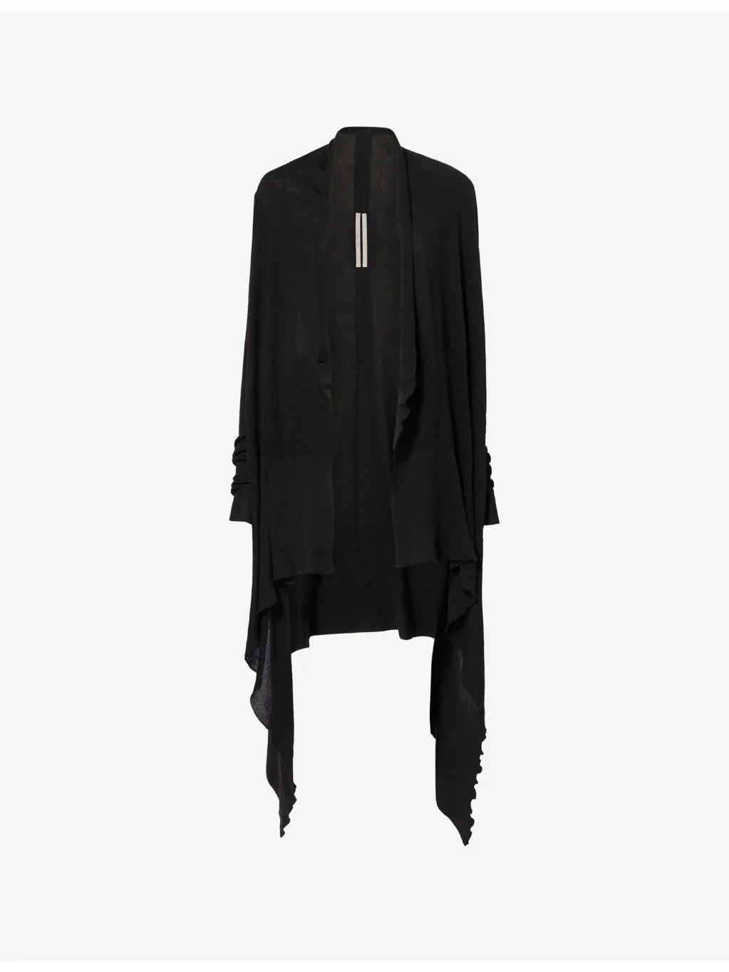 PRODUCT DETAILS - Rick Owens wool cardigan - 100% wool - Open front, long sleeves, draped panels at front, ribbed trims - Hand wash - Made in Italy - True to size - Model is 5ft 10in/1.78m and wears a size small - Lightweight, slight stretch Ref: R04583854