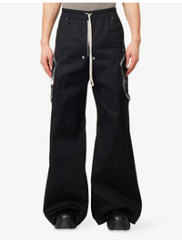 PRODUCT DETAILS - Rick Owens cotton-poplin trousers - 100% cotton - Exposed zip fastening at front - Loose fit, elasticated drawstring waistband, dropped crotch, wide leg, two side slip pockets, two-way zip pockets at leg, silver-toned eyelet and metal rivets, two rear welt press-stud pockets, cotton poplin texture. - Hand wash cold - Size UK 32: rise 17in / 43cm, inside leg 31in / 79cm, leg opening 31in / 79cm - Model is 6ft 2in/1.88m and wears a size UK 32 - Midweight, non-stretch Ref: R04557960